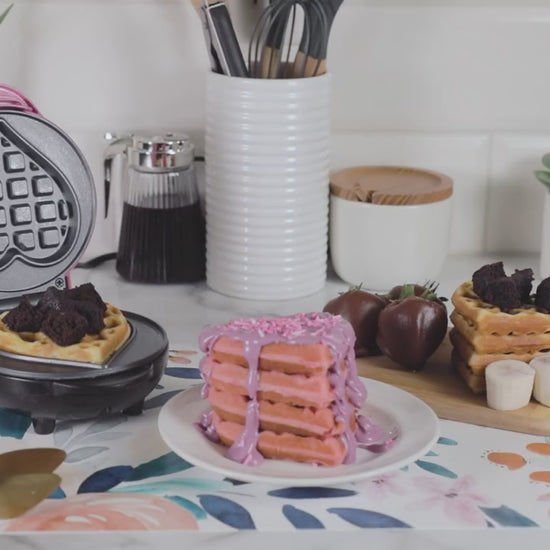 Quickly make delicious golden brown waffle hearts, french toast, hashbrowns and more with the MyMini Heart-Shaped Waffle Maker! Cooking is as simple as 1-2-3 - all you have to do is plug in the unit, wait a couple of minutes for it to preheat and then you can start cooking! It's small and lightweight so it won't create cluster on your kitchen counter - making it perfect for small kitchens, apartments, dorms and campers/RVs. This is the perfect gift for any occasion!